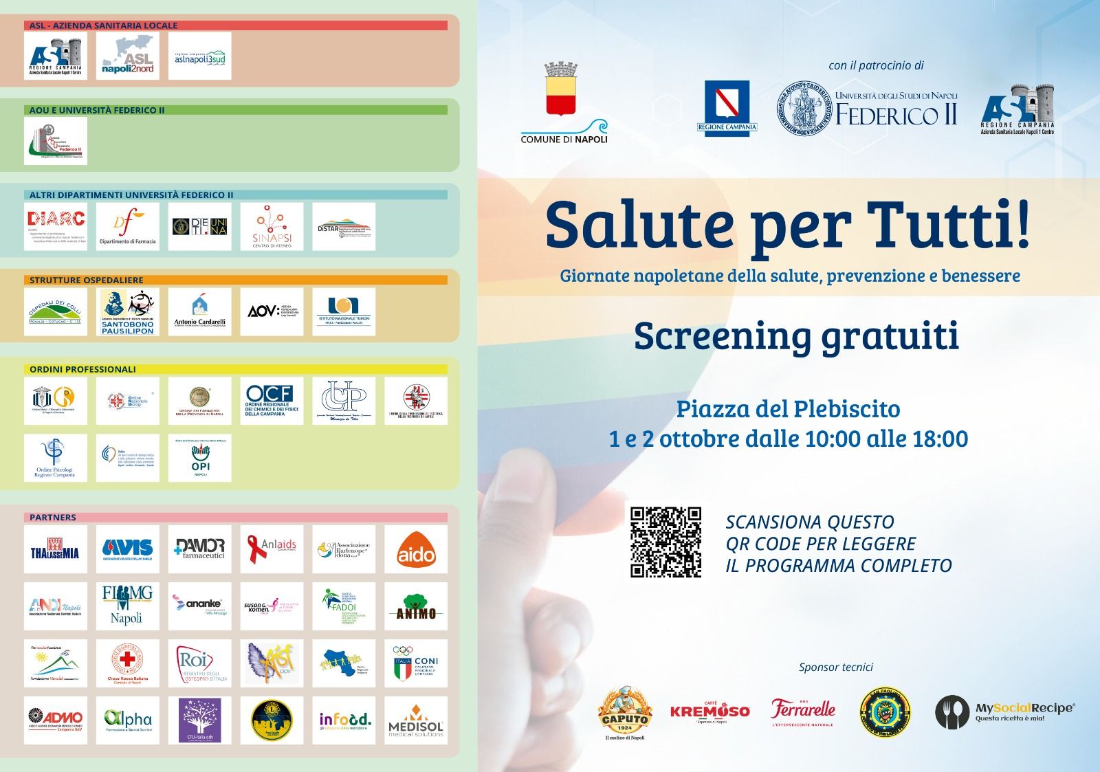 'Salute per tutti' l'1 e 2 ottobre in Piazza Plebiscito screening gratuiti per una giornata all’insegna della salute e della Prevenzione